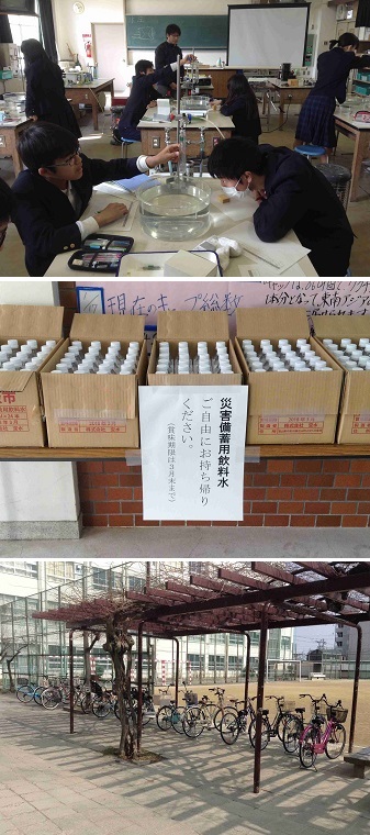 参観の機会を利用して、新しい災害備蓄用の飲料水が入ったため、賞味期限が近づいたペットボトルの飲料水を、持って帰っていただけるように用意しました。