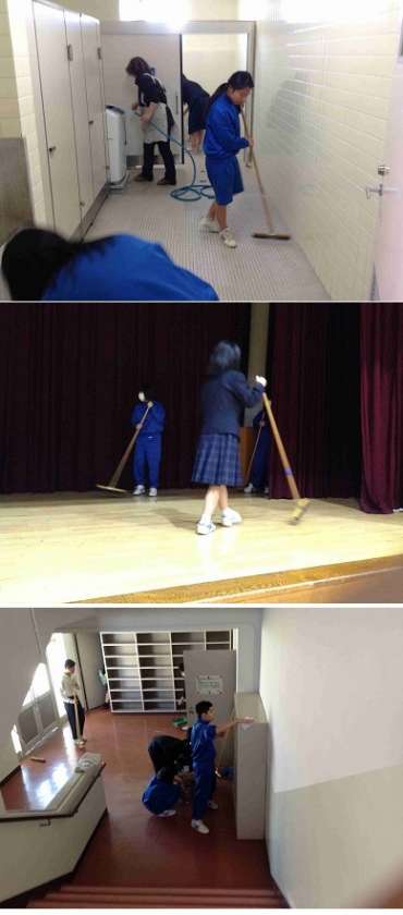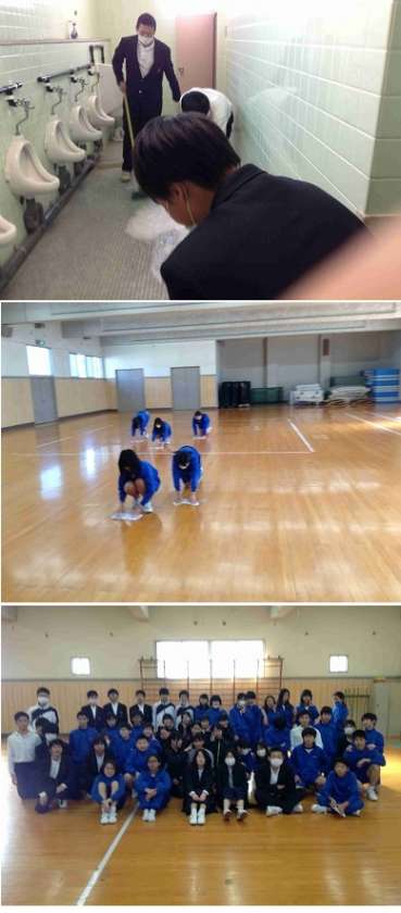 今回は、卒業前に体育館の清掃してくれました。