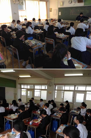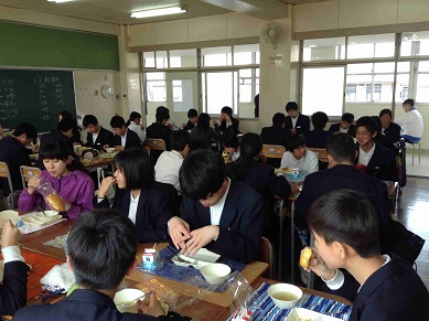 生徒の中にはアレルギーのある生徒もいますが、多くは自己除去の申請をしています。ご家庭でも献立表をご覧いただき、注意をしていただきますようお願いいたします。