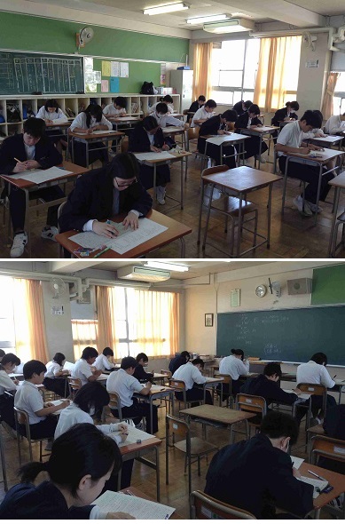 本日から中間テストです。どの学年の生徒も真剣に取り組んでいました。