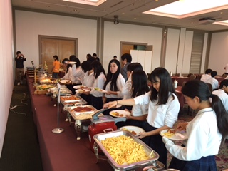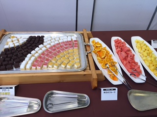 18時00分 夕食はバイキングです。窓からの景色を眺めながらたくさんの種類の料理を美味しくいただきました。