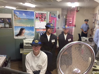 素敵な帽子もお借りし、切符を作ったり、今日は堺市駅まで行き、挨拶もしていたようです。