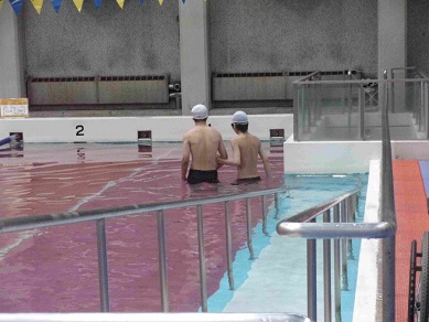 障がいのある方々が、安心してプールを利用できる方法を学んでいるようです。