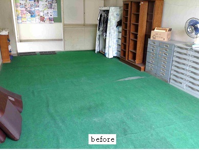 合同作業とは、少人数ではできない作業などを近隣の管理作業員さんの協力を得てする作業で、本校の相談室の床の張り替えをお手伝いしていただきました。