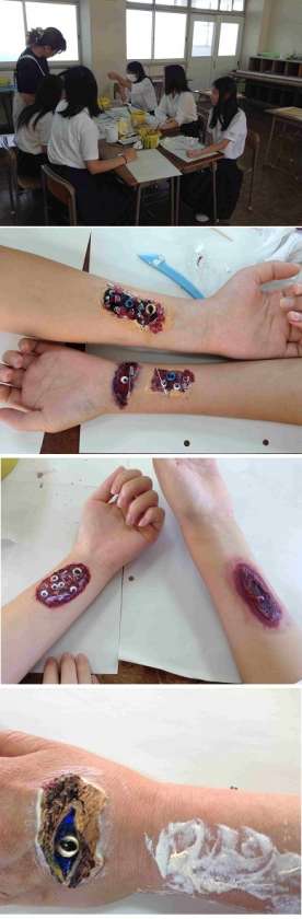 今日は特殊メイクに挑戦していました。作品の出来上がりに先生たちも驚きでした。