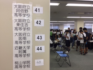 本日、東住吉区民ボールにて高校進学相談会を開催しています。