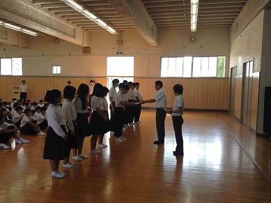 まず最初に夏休み中の部活動の表彰(卓球部)や、少林寺拳法部の全国大会出場などが紹介されました。