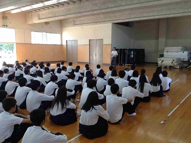 その後引き続いて、校長先生から、夏休みの過ごし方「被害者にも加害者にもならない」・「命を大切にすることや平和について考える機会とする」・「学習・部活動など自分が頑張ったこと」など振り返りましょうとお話がありました。