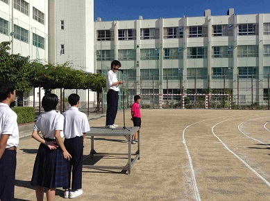 ・校長先生から本日配布する「大阪市のめざす部活動」の内容や「大阪880万人訓練」などのお話がありました。