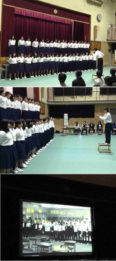 「やる気のない主人公が、職場体験をきっかけに大切なことを学ぶ…」というストーリーの劇の最後にAIの『ハピネス』を全員で合唱しました。