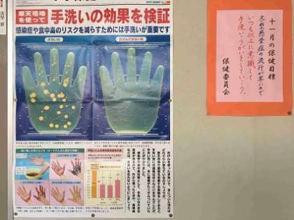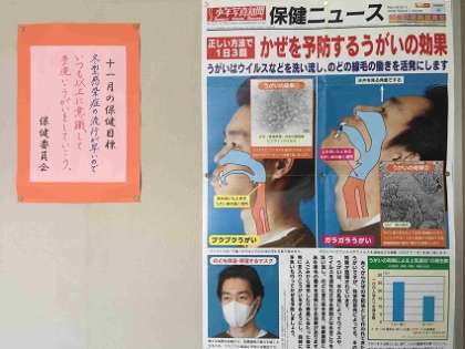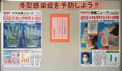 ・保健室の前にいつもタイムリーなポスターが掲示されています。