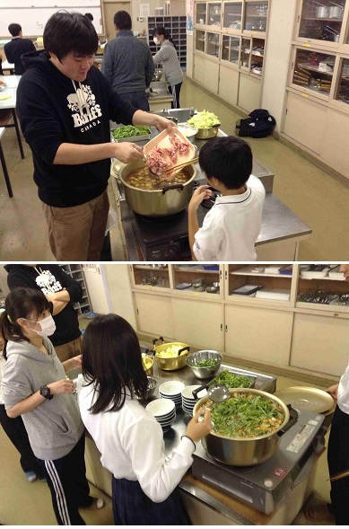 中学校の調理室で、矢田西小学校と合同でチョソン友の会の合同料理会を実施しました。