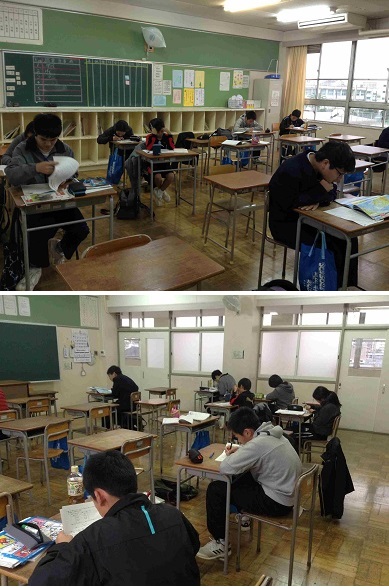 冬休みの宿題をしている人や、進路に向けて私立高校の入試問題集や公立高校の自己申告書の下書きに取り組んでる人もいました。