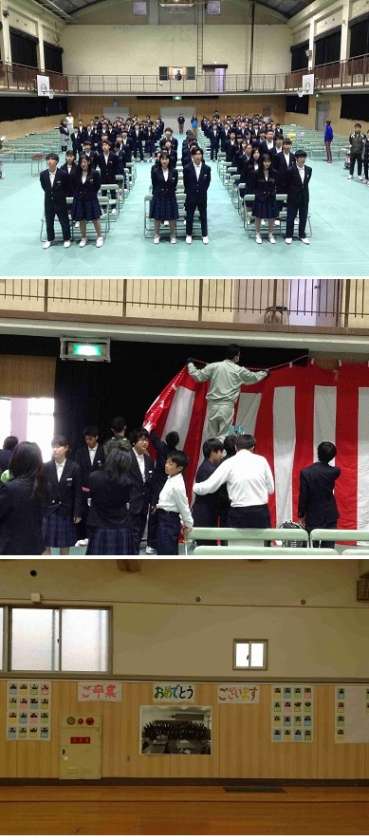 明日はいよいよ卒業式です。1・2年生が昼から式場準備等をしてくれました。全員で、最高の卒業式にしましょう!!