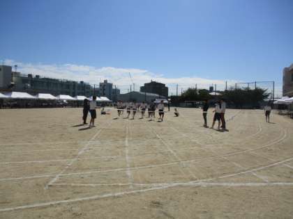 昨日の天候とは打って変わった快晴の中、昨日実施できなかった体育大会予行演習が行われました。