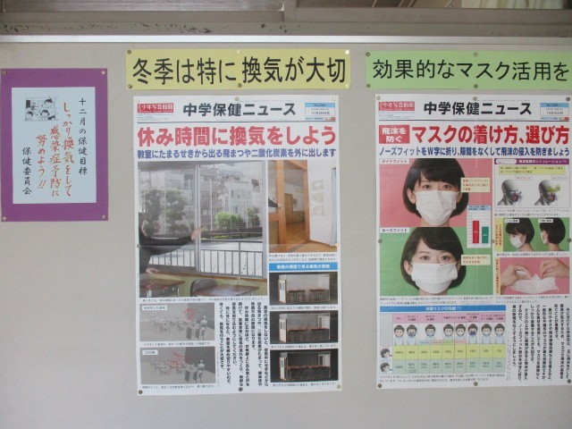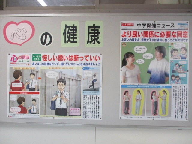 保健室前には、心と体の健康についての貴重なポスターが掲示されています。