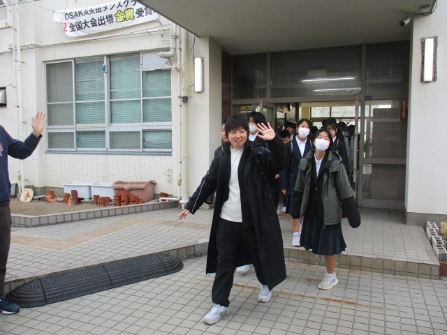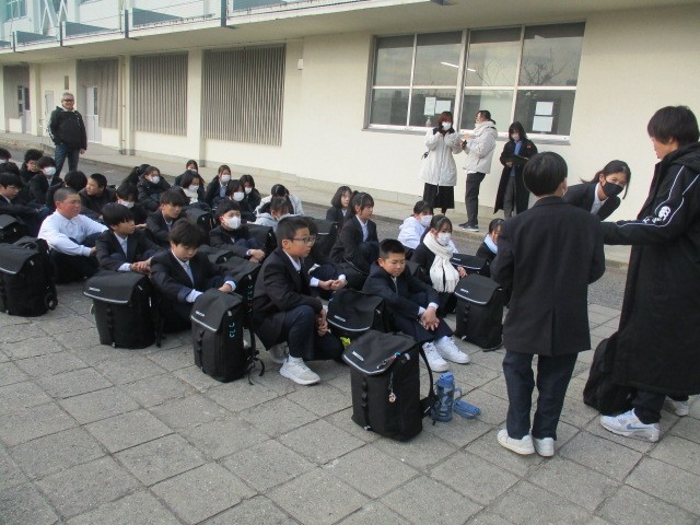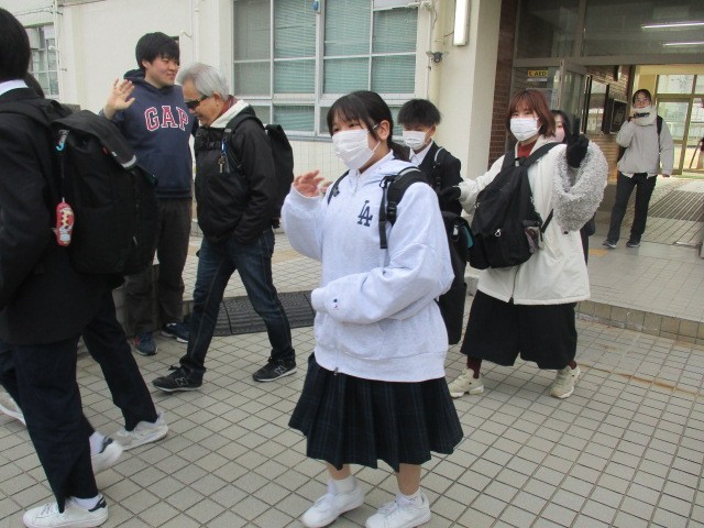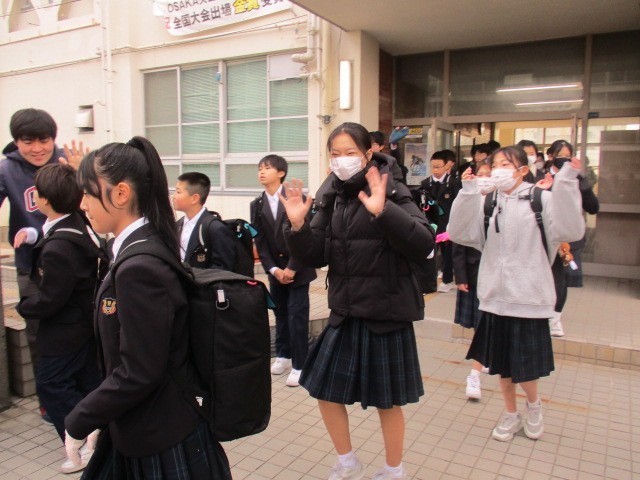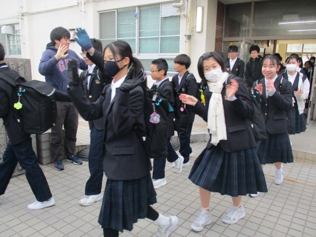 今朝、1年生が予定どおり、元気に職場訪問へ出発しました。