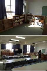 2月23日(金) 新しい書架が購入され、図書館補助員の方が書架の配置換えをして...
