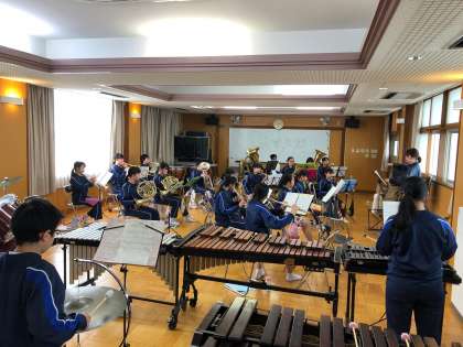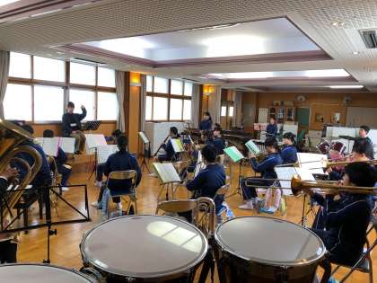 多目的室では吹奏楽部の人たちが合奏中でした。