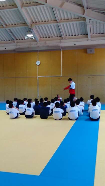 男子は格技室で、女子は体育館で行進の練習などをしています。