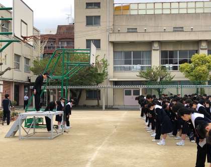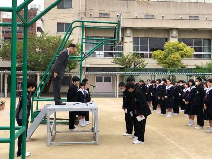 全校集会では各種委員会の認証式がありました。