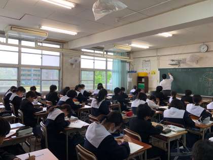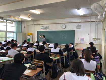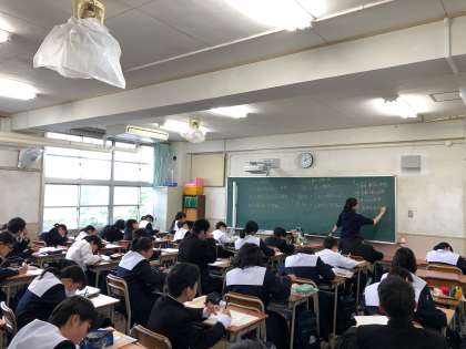 1年1組の英語、2組の社会、3組の家庭科の授業の様子です。