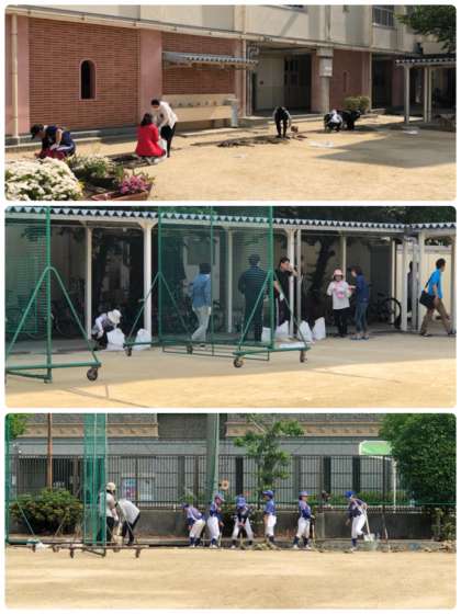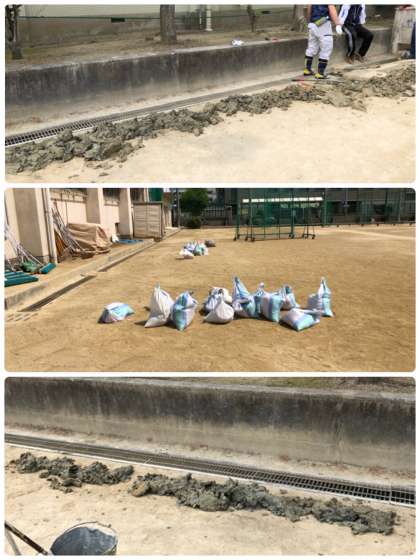 本日、8時30分よりPTAの方、本校の学校体育施設開放事業で体育館や格技室、運動場を使用する団体方によるボランティアの溝清掃を行いました。
