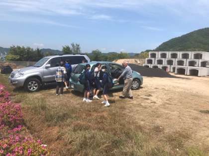 車で迎えに来ていただいたご家庭や入村式会場に近いご家庭は徒歩で民泊先へ移動です。