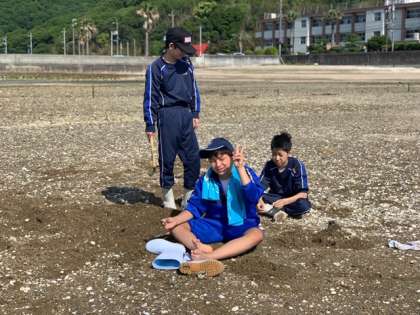 カニを見つけたのでしょうか。