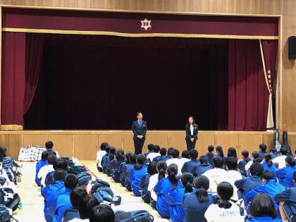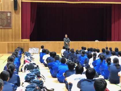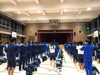 全員、体育館に集まり、3日間お世話になった添乗員さん、写真屋さんからお話をいただきました。