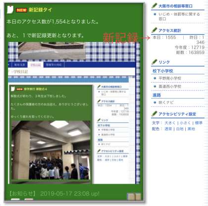 本日のアクセス数が1,555となり、平成29年5月18日に記録した1,554を更新しました。