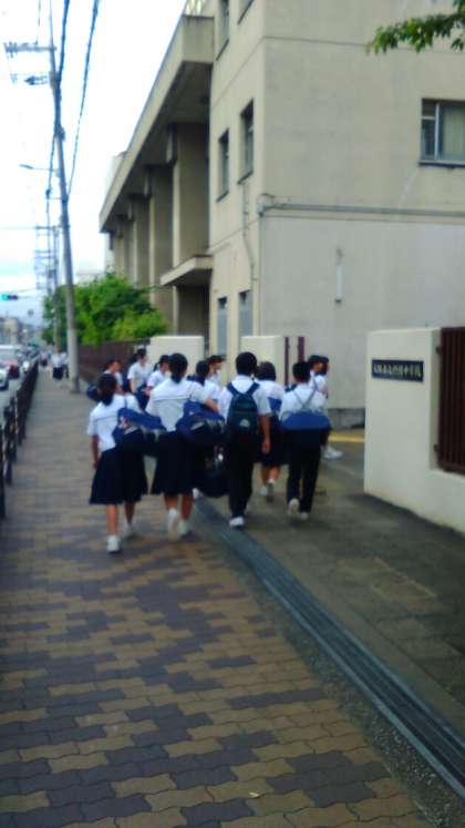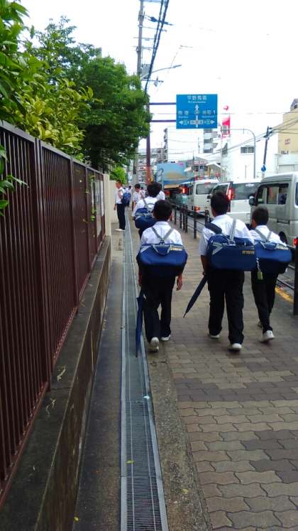 朝の登校の様子です。雨もあがりました。