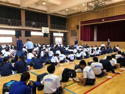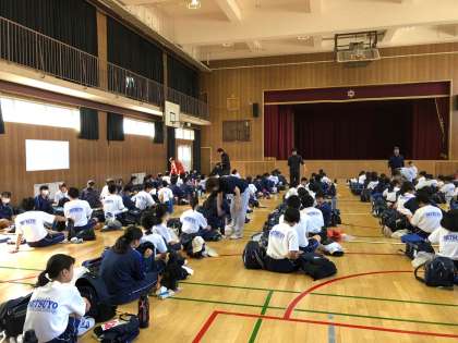 点呼を取り、出発式の前に持ち物の確認をしています。