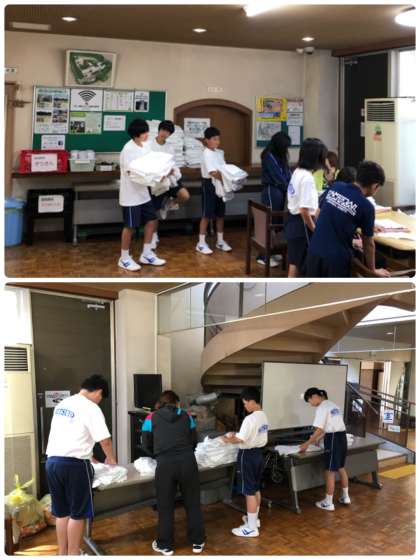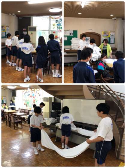 係の人がシーツの返却と同室の人の健康状態を伝えにロビーに来ています。