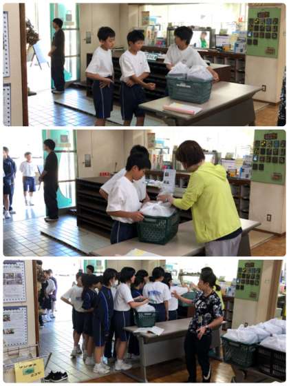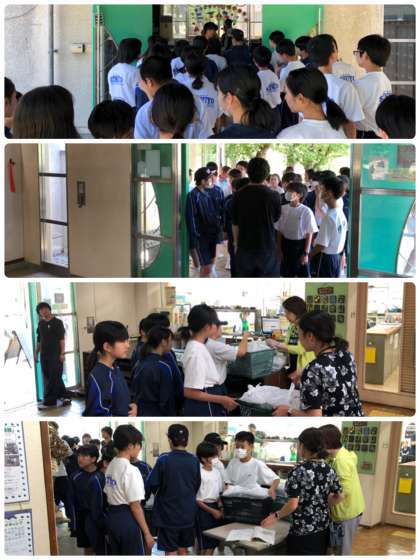 先生からお弁当を受け取って、みんなのもとへ戻ります。