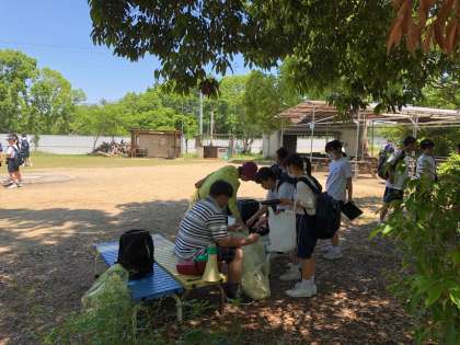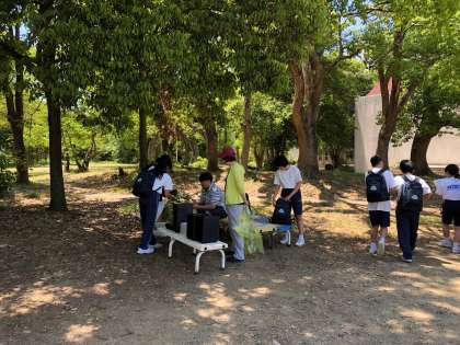 食べ終わったあとのお弁当の容器やその他のゴミを先生のもとに持っていき、分別して捨てました。
