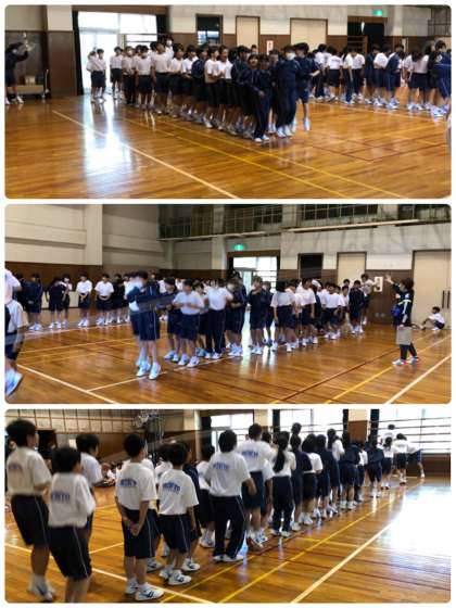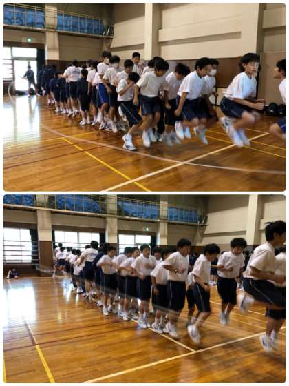 体育館では、今回の一泊移住最後の取り組みである大縄跳びわを行いました。毎年、体育大会では大縄跳び「みんなでジャンプ」を行います。