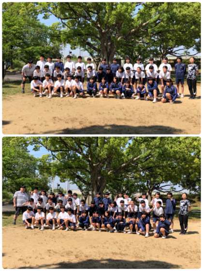 退所式が終わり、バスに乗る前に学級写真わ撮影しました。