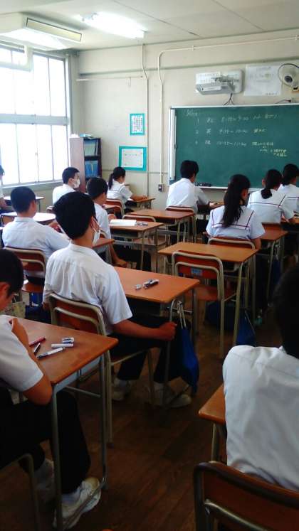 3年生、中間テストが始まる直前の様子です。試験問題が配られています。