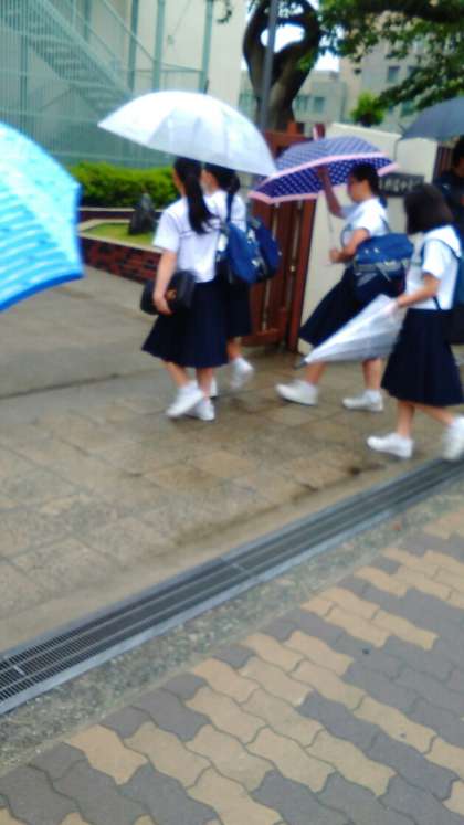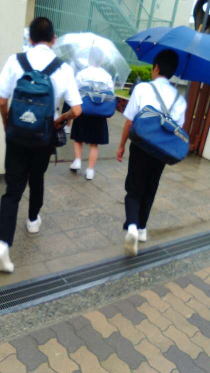 久しぶりの雨の中、傘をさしての登校です。中間テスト頑張りましょう。
