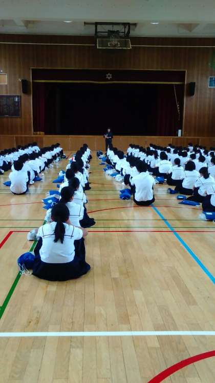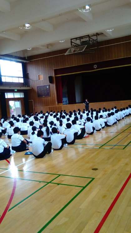 1年生の学年集会が行われています。中間テストも終わり、結果が返ってきます。しっかり見直しをしましょう。