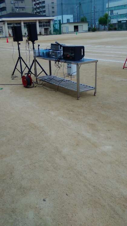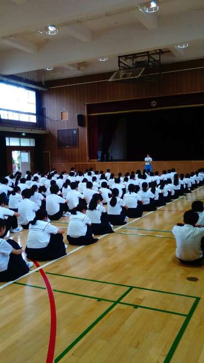 3年生の学年集会の様子です。グランドでは体育体育に向けての学年練習の準備が整っています。