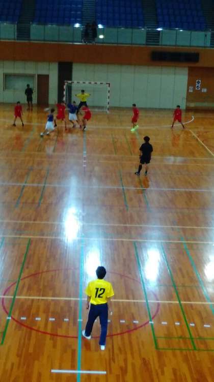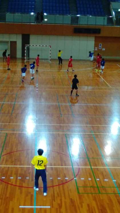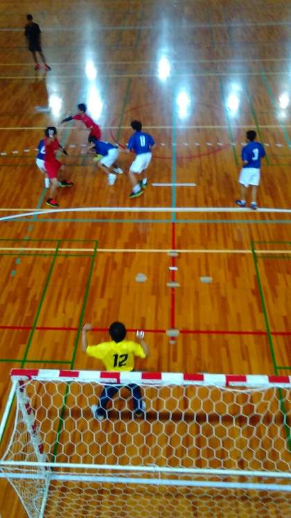 決勝リーグ、大淀中学校と対戦しています。前半を終わって6対7で、負けていますが、大接戦です。青のユニフォームが摂陽中学校です。応援お願いします。