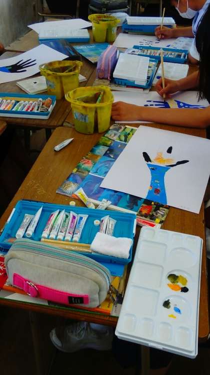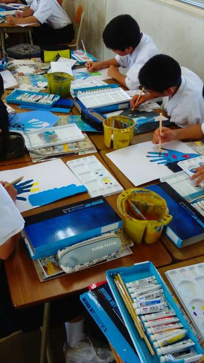 1年生の美術では、夏をイメージした作品に取り組んでいます。