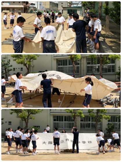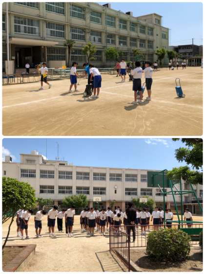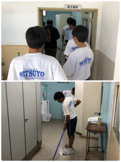 運動場の準備以外にもトイレ掃除など分担して行っています。