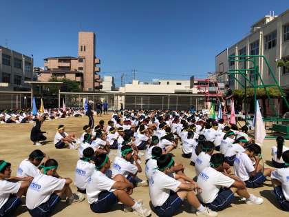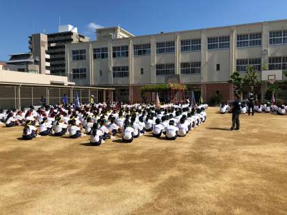 入場行進の前、平賀先生がみんなを激励しました。