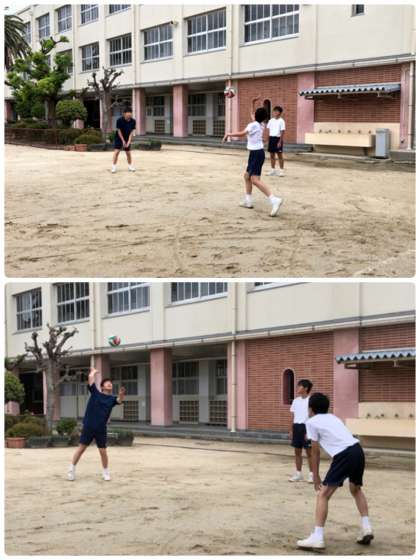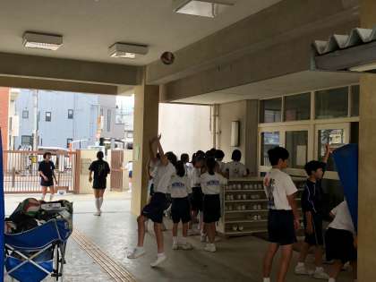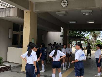 バレーボール部は男女とも女子バスケットボールの練習が終わるのを待っていました。この後、体育館に入って練習をします。