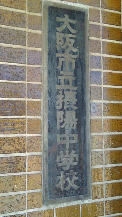 北校舎の中央にある摂陽中学校の名。ここに校舎への入口がありました。