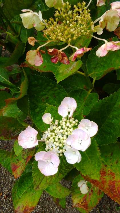 雨が降ったりやんだり。平年よりかなり遅く梅雨に入りましたが、紫陽花には雨が似合います。