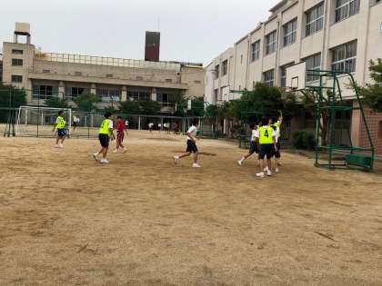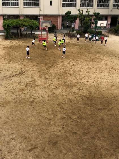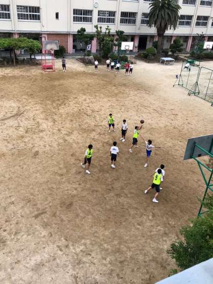 中庭では、男子バスケットボール部が練習をしていました。試合が近いので、練習にも熱が入ります。
